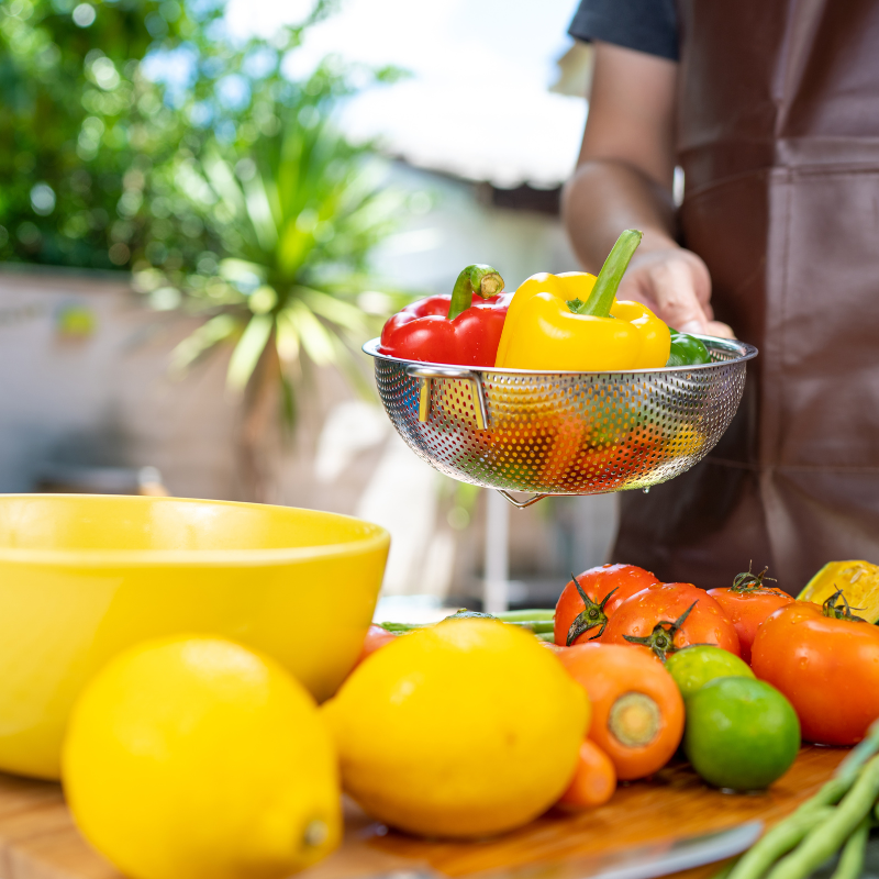 Removes dirt, chemicals, and other impurities when washing fruits, vegetables, and other food items, making them safer to consume.